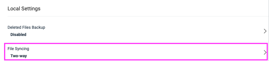 Scroll down to the Local Settings section and click the File Syncing setting: