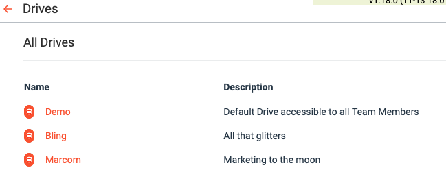 The Drive Description will be listed in the All Drives list for members who have access to the Drive. It is a short and friendly tagline describing the Drive.